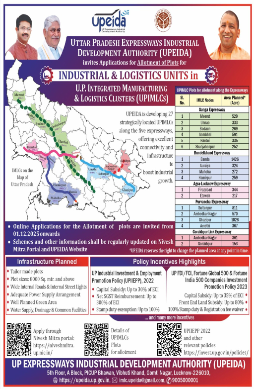 100 एकड़नोएडा अंतरराष्ट्रीय एयरपोर्ट के समीप सेमीकंडक्टर विनिर्माण इकाइयों हेतु 100 एकड़ भूमि चिन्हित की गई है