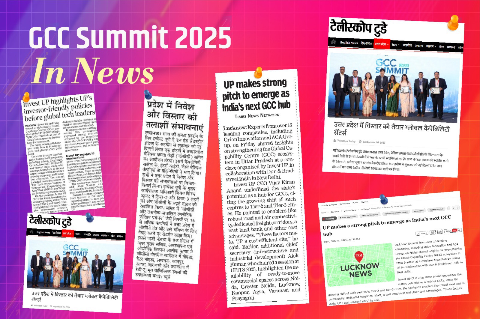 26 सितंबर, 2025 को नई दिल्ली में वैश्विक क्षमता केंद्र शिखर सम्मेलन आयोजित किया जाएगा  |  इन्वेस्ट यूपी की आधिकारिक वेबसाइट, उत्तर प्रदेश सरकार, भारत
