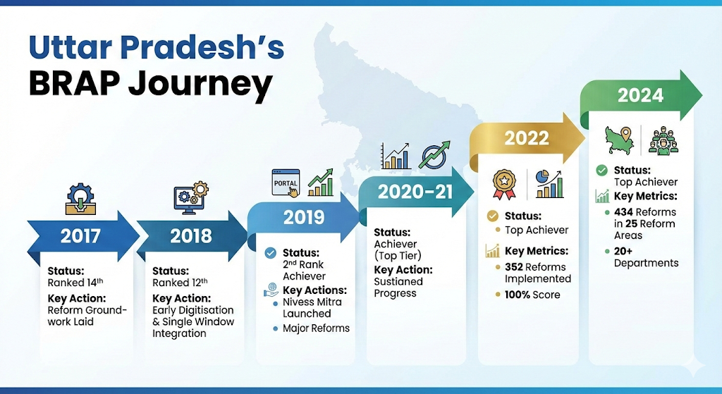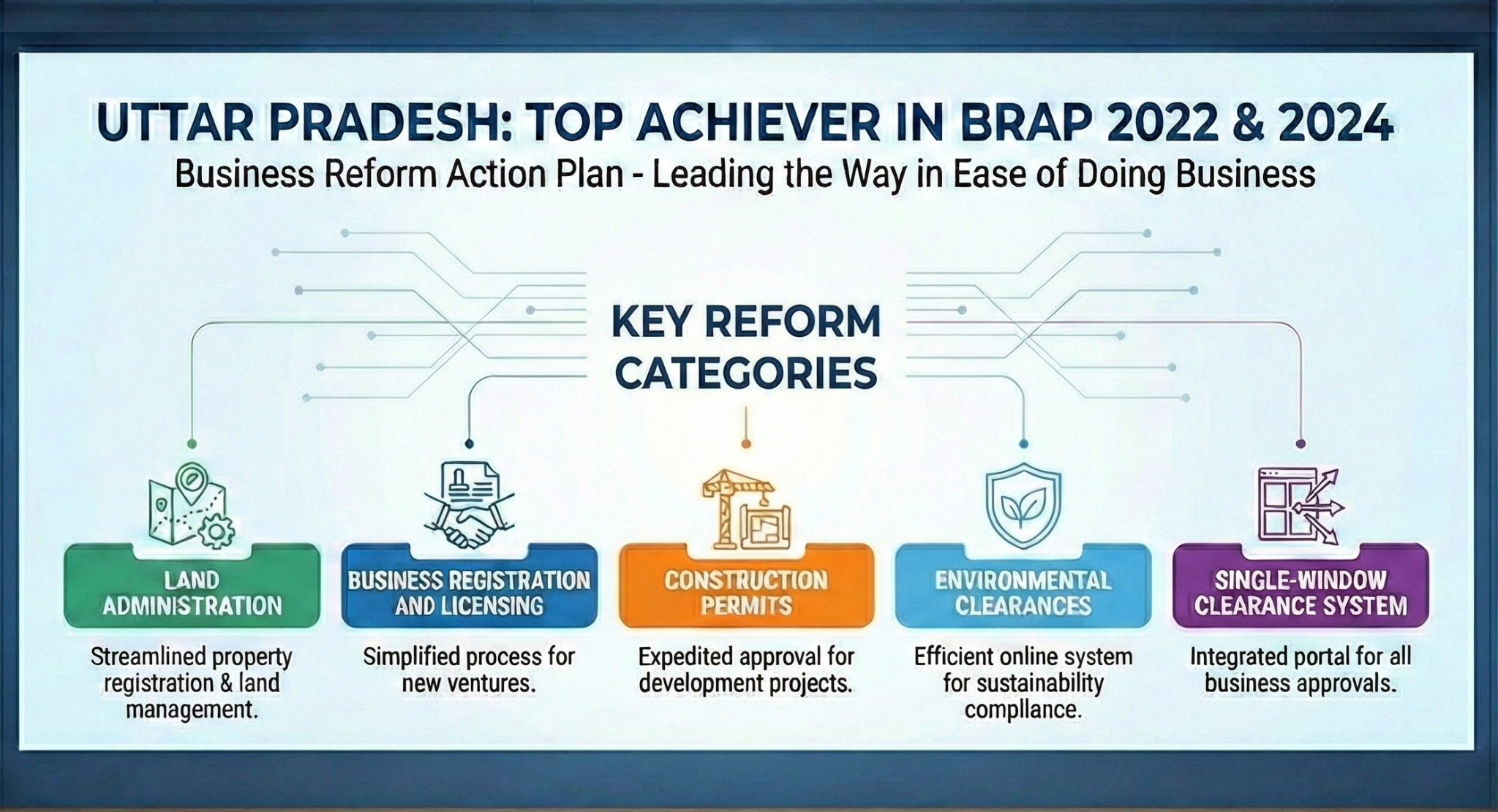 The implementation and coordination of BRAP reforms were led by Invest UP, the state’s nodal investment facilitation agency.